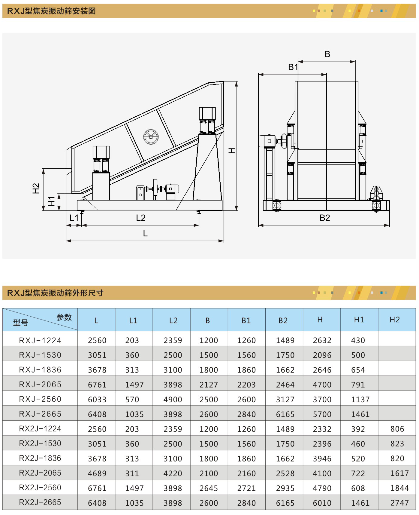 / PRODUCT DETAILS用途及特點(diǎn): RXJ 型焦炭振動(dòng)篩運(yùn)動(dòng)軌跡為圓,主要用于焦化廠的焦炭分組作業(yè)。該系列篩機(jī)引進(jìn)國(guó)外技術(shù)制造,采用熱鉚釘聯(lián)接框架式結(jié)構(gòu)篩機(jī)分為單層和雙層,具有結(jié)構(gòu)**、堅(jiān)固耐用、噪聲低、維修方便特點(diǎn)。單層不標(biāo)注,電動(dòng)機(jī)可安裝在篩機(jī)的左側(cè)或右側(cè)。